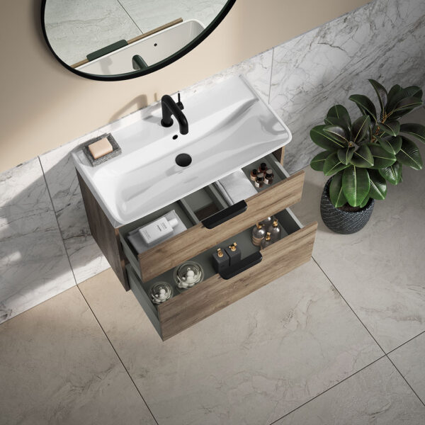 Compact Dimensions: With dimensions of H 645 x W 800 x D 415mm including the basin, the Calia wall unit is designed to optimize space without compromising on style, making it perfect for both small and medium-sized bathrooms.
